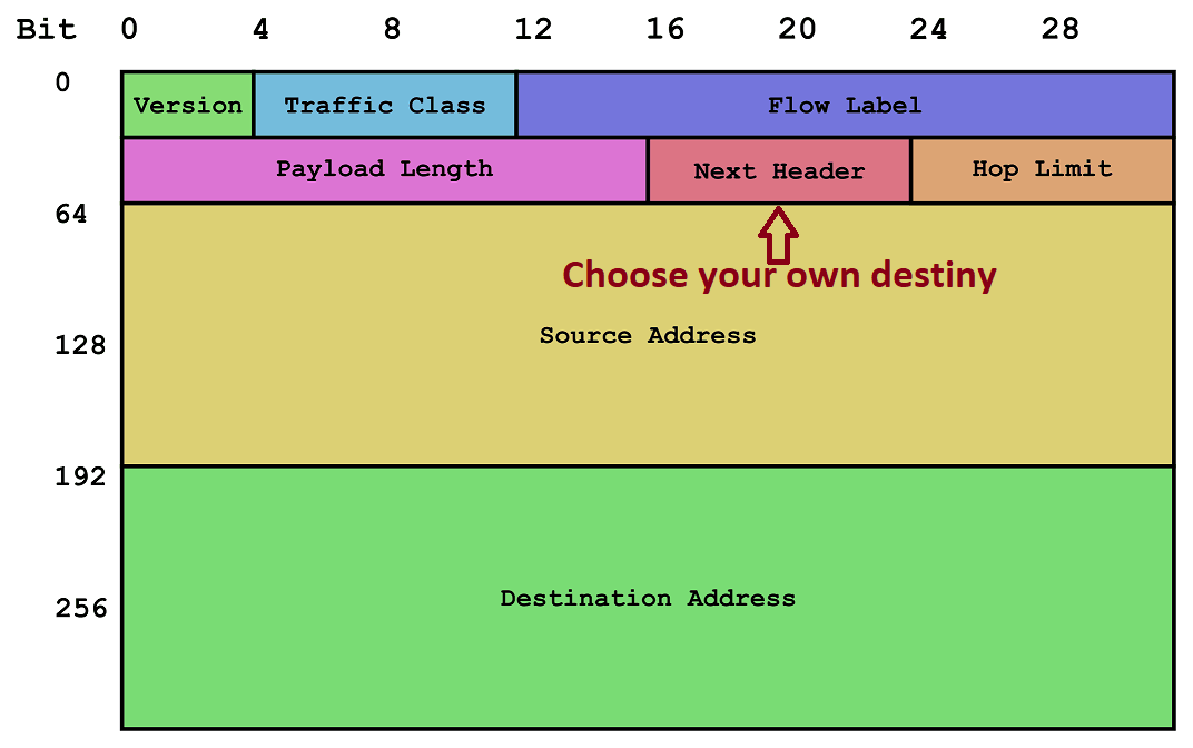 - Extension Headers in IPv6: IPv6 uses extension headers to handle optional internet-layer information. These headers are processed sequentially, unlike IPv4 where options are usually confined within the main header. When a packet includes multiple extension headers (like Hop-by-Hop Options, Routing, or Fragment headers), they need to be processed one by one in the order they appear.