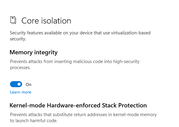 - Disable Core Isolation → Memory Integrity for compatibility.