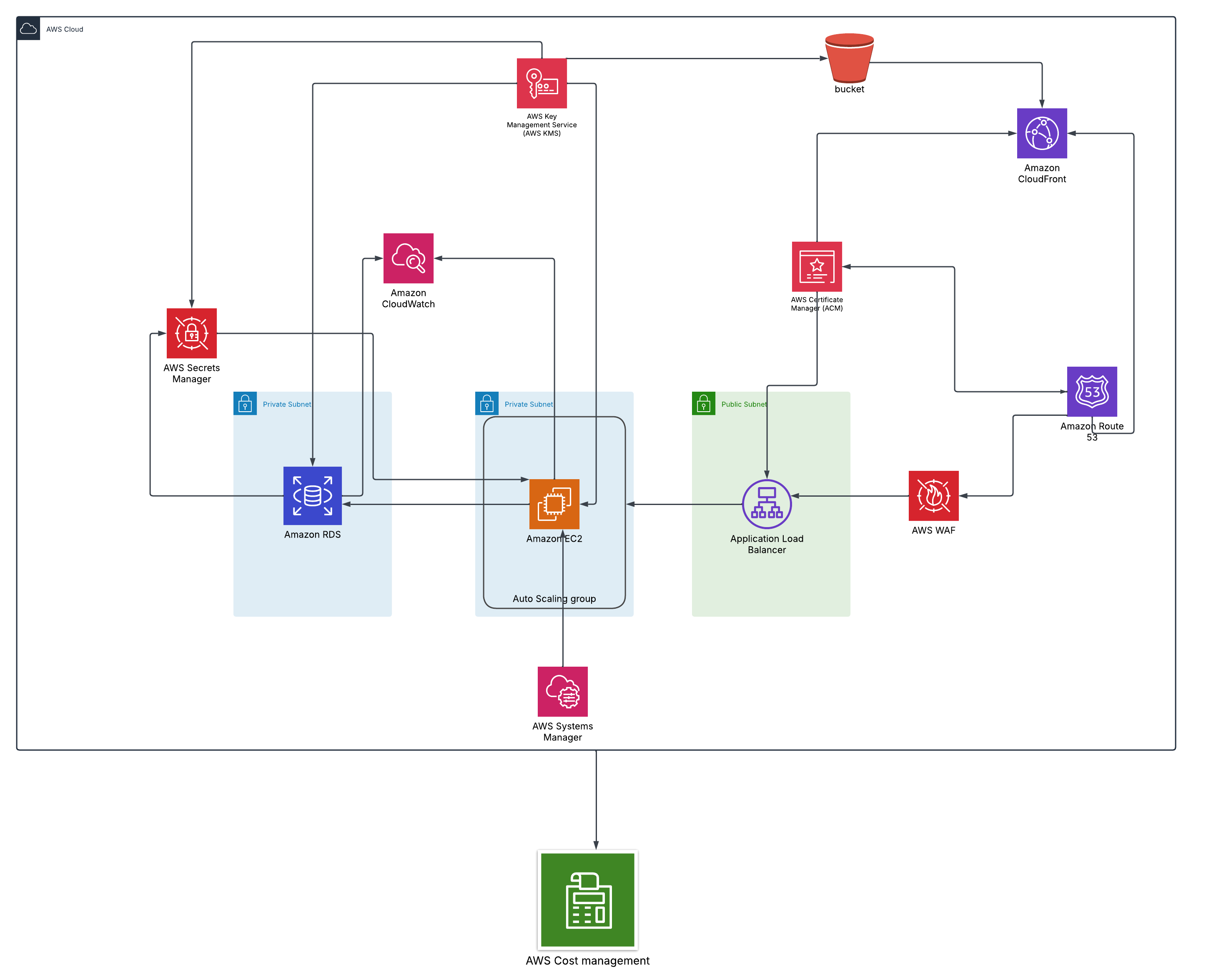 - CloudFront CDN for caching and serving static assets (CSS, JS, images).